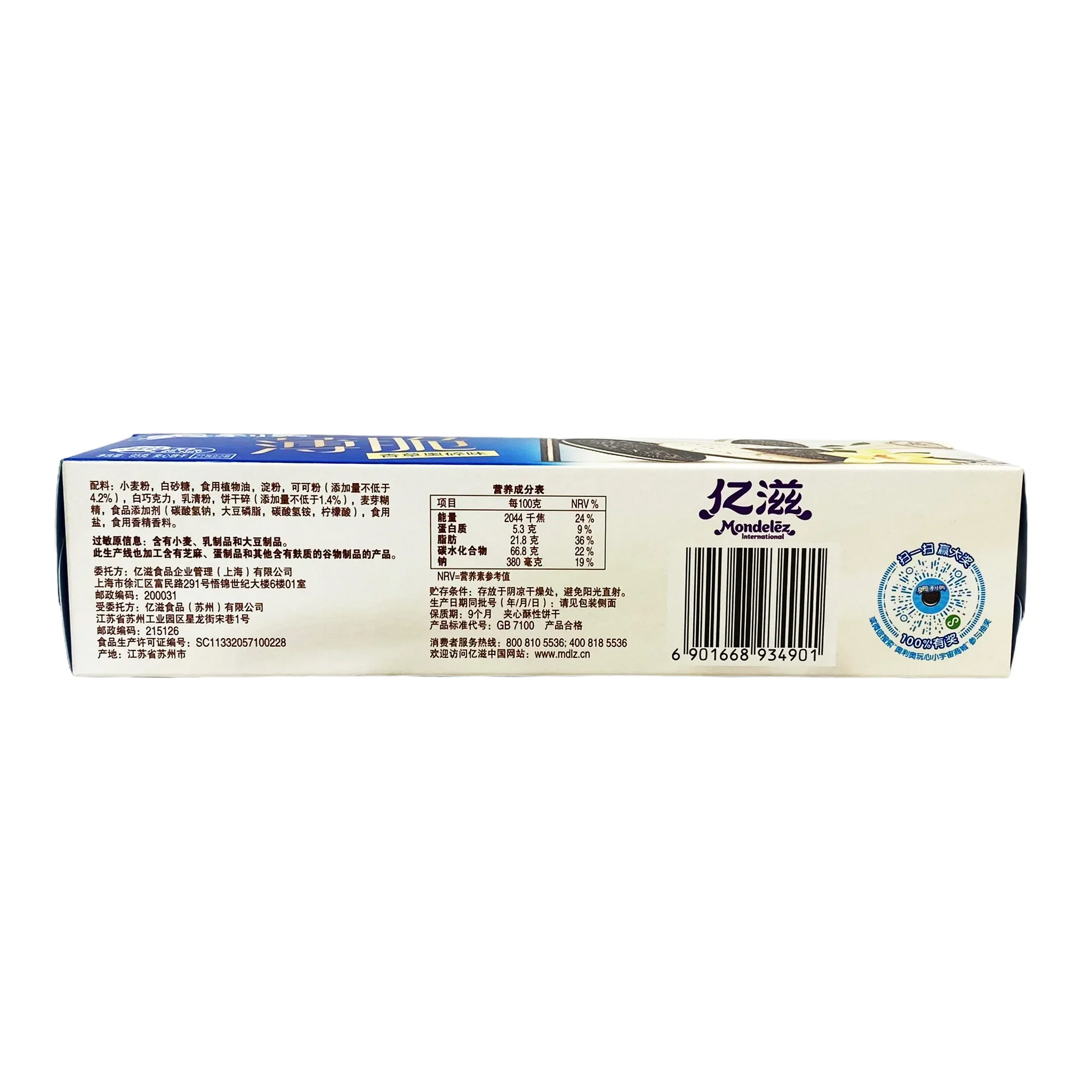 Oreo Thins in Vanilla Crumble Flavor. These thin and crispy cookies are filled with a creamy and delicious vanilla crumble flavored filling that is sure to satisfy your sweet tooth. Perfect for a light snack or as a dessert accompaniment, Oreo Thins in Vanilla Crumble Flavor are a deliciously satisfying treat. (95G)
